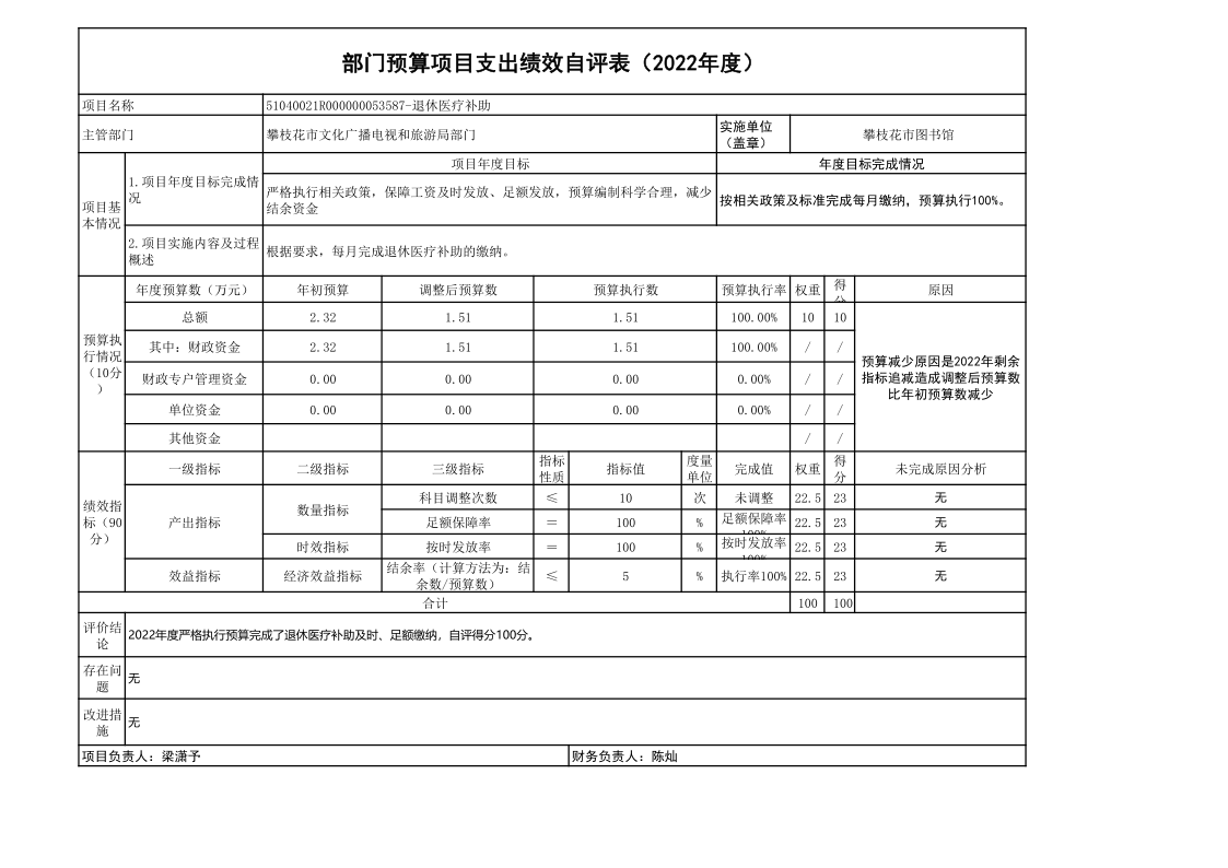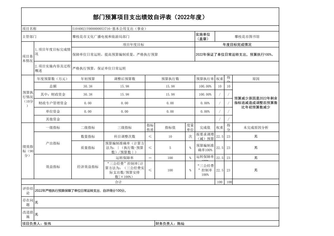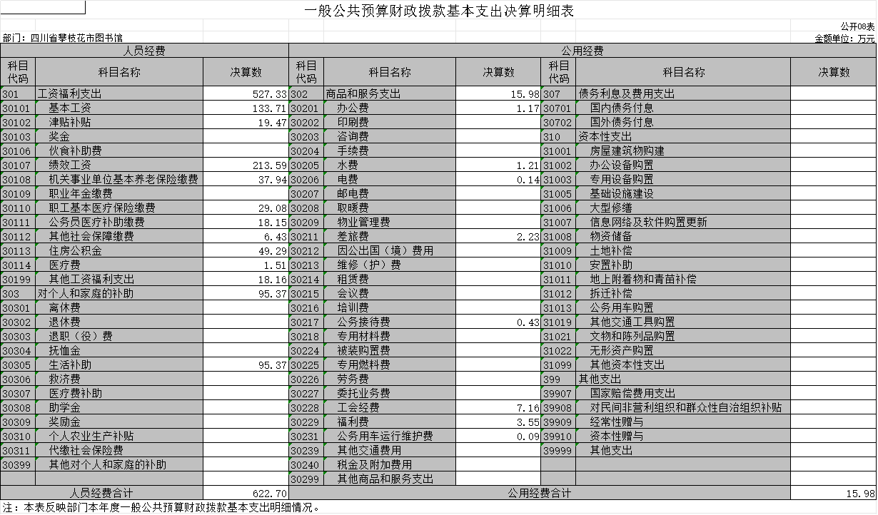 2022年度攀枝花市图书馆单位决算